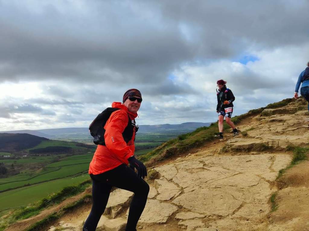 Rare race photo of myself coming down Roseberry topping with the shorts in question